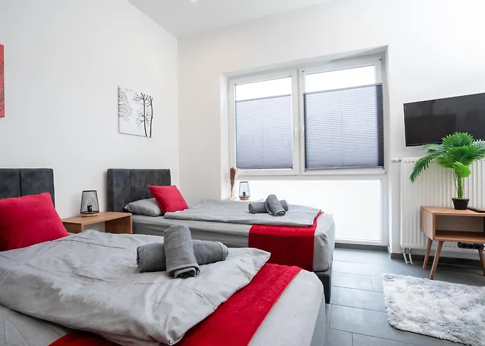 Located a 10-minute ride from Zeche Pluto, the 35 m^2 Serviceroom24 - Apartment 3 In Recklinghausen Hoch Wlan - Smart-Tv - 24-7 Check-In Und Kuche gives access to a number of tourist attractions in the area. Wi-Fi and parking are also available at the apartment.